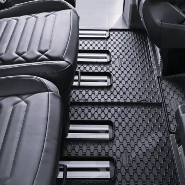 Dywaniki gumowe Ford Transit Tourneo Custom 2024, długa wersja - BRAK DOPASOWANEGO DYWANU DO BAGAŻNIKA. POLECAMY WERSJĘ L1 BEZ BAGAŻNIKA